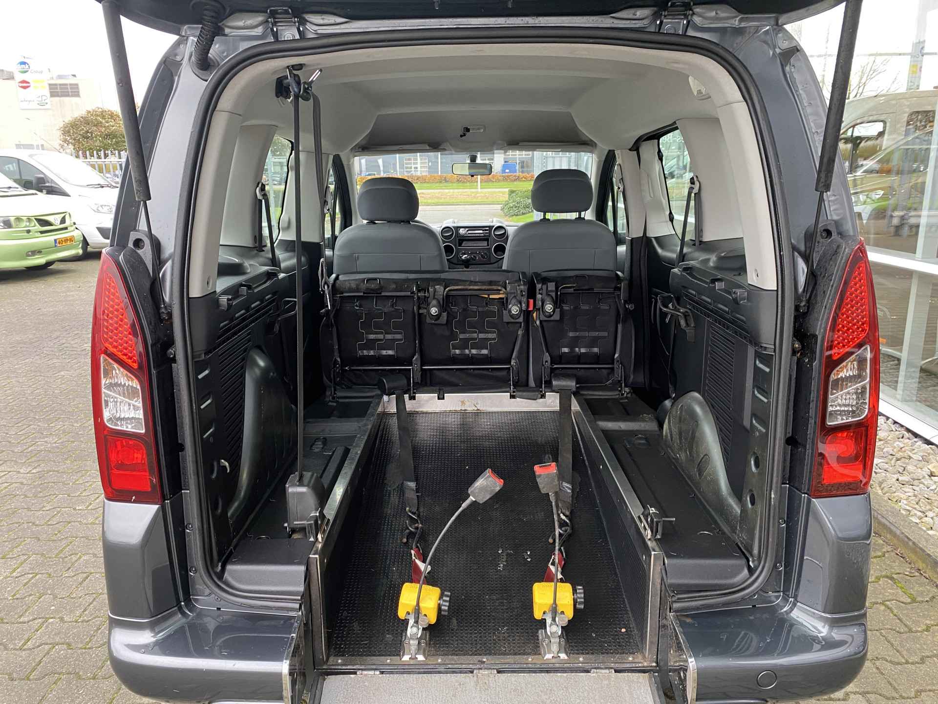 Nieuw binnen: deze mooie ruime Citroën Berlingo 3+1 Rolstoelauto 1.6-16V Attraction uit 2013 met slechts 90 dkm op de teller welke o.a. is voorzien van getint glas, metallic lak, radio/cd/mp3, elektrische ramen etc... Daarnaast is deze fraaie Berlingo uitgerust met een brede bodemverlaging met een lichtgewicht oprijplaat en een 4-punts rolstoel-fixeersysteem waarmee veilig en comfortabel vervoer van ieder type rolstoel of scootmobiel mogelijk is. De aanwezigheid van een in delen opklapbare achterbank zorgt ervoor dat deze knappe Berlingo heel goed als 3+1 rolstoelauto dienst kan doen maar ook prima als volwaardige 5-persoons met een grote kofferruimte ingezet kan worden. Heeft u interesse in deze of een andere Rolstoelauto of Rolstoelbus? Bel of app voor meer info met 06-27392718 en maak een afspraak! Voor een passing en proefrit komen wij op uw verzoek graag bij u aan huis.