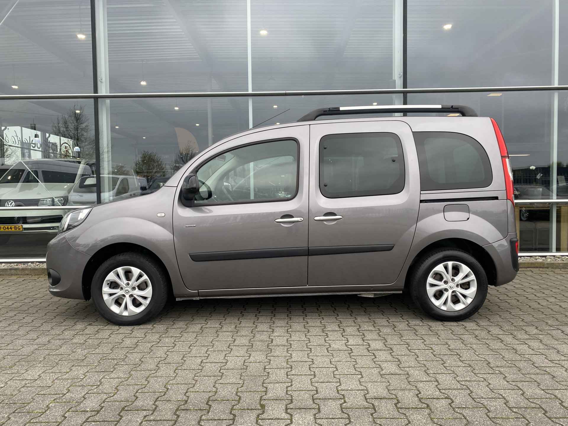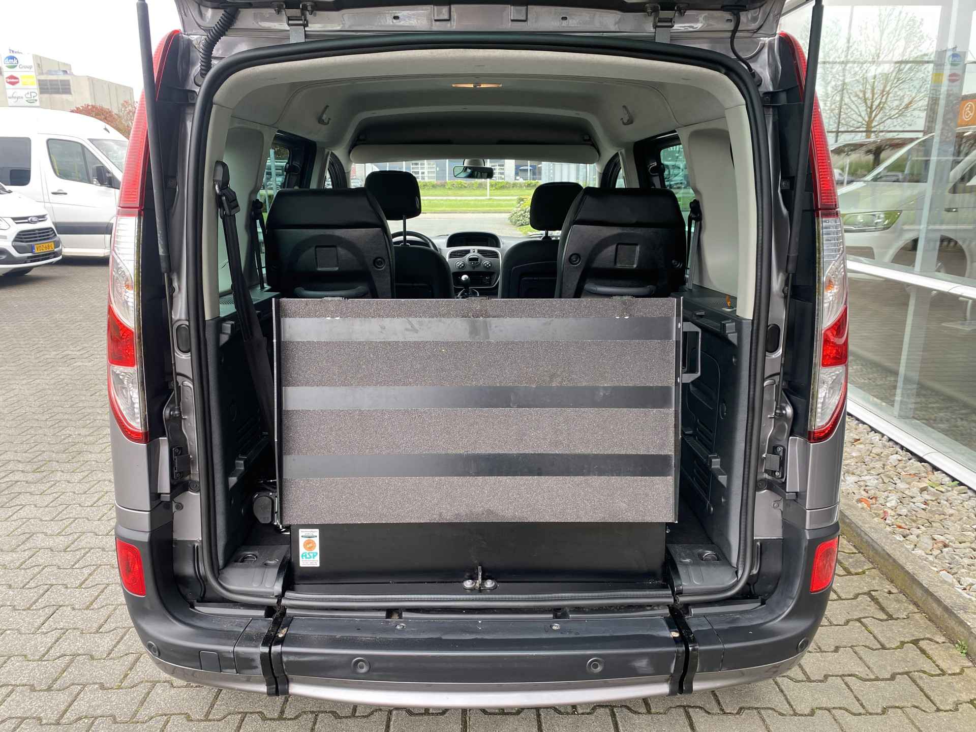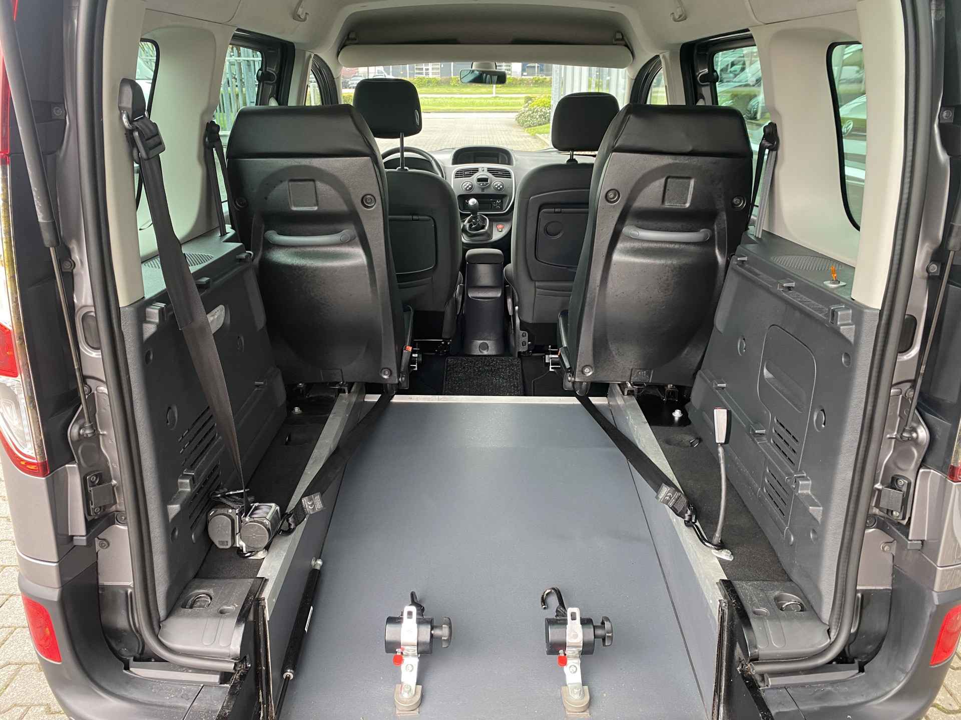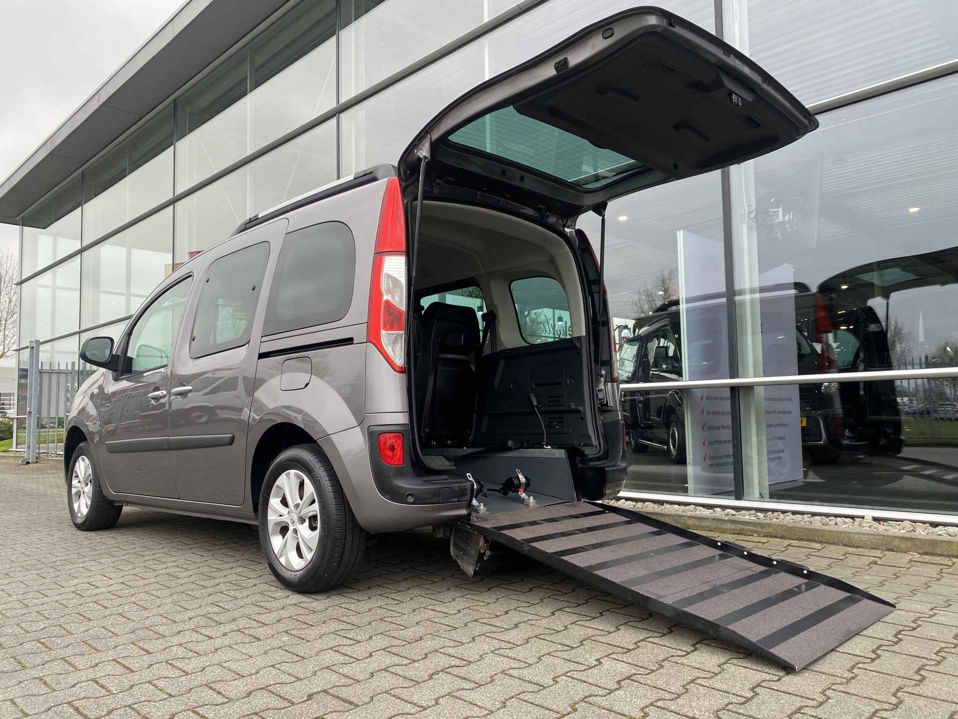 Net nieuw binnen: deze zeer nette en mooi uitgevoerde Renault Kangoo Family 4+1 Rolstoelauto 1.2 TCe Limited Start&Stop uit 2016 welke is voorzien van fijne opties zoals o.a. metallic lak, lichtmetalen velgen, extra getint glas, mistlampen, parkeersensoren, regensensor, dakrails, multifuntioneel stuur, climate control, cruise control, start-stop, centrale vergrendeling met afstandsbediening, bumper en buitenspiegels in kleur, radio/cd/mp3 met bluetooth en nog heel veel meer... Daarnaast is deze keurige 4+1 Kangoo uitgerust met een mooie ruime bodemverlaging met oprijplaat en een 4-punts rolstoel-fixeersysteem waardoor veilig en comfortabel vervoer van werkelijk ieder type rolstoel of scootmobiel mogelijk is. Heeft u interesse in deze of een andere Rolstoelauto of Rolstoelbus? Bel of app voor meer info met 06-27392718 en maak een afspraak! Voor een passing en proefrit komen wij op uw verzoek graag bij u aan huis.